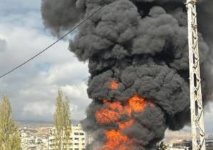 بالفيديو: حريق بسبب احتكاك بأسلاك كهربائية