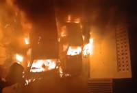 في المحمرة.. حريق يلتهم سيارة إسعاف ومستوصف (فيديو)