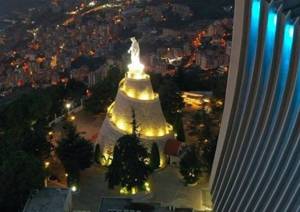 تمت، مساء اليوم، إضاءة قاعدة تمثال سيدة لبنان في حريصا بألوان العلم اللبناني وعلم الفاتيكان، وذلك استعداداً لزيارة البابا لاوون...