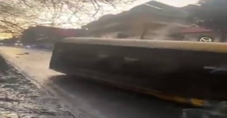 بالفيديو… إنقلاب صهريج بنزين وقطع الطريق