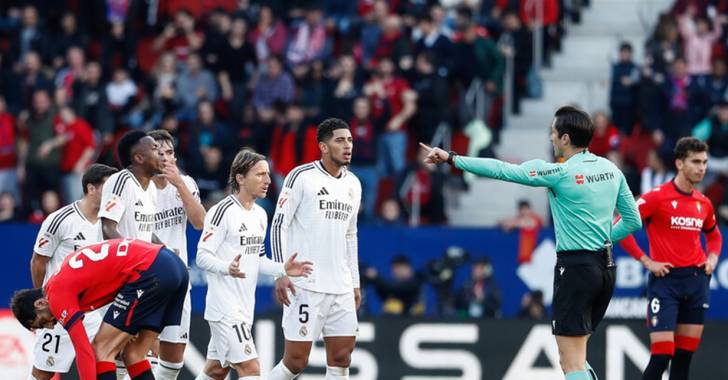 تسبب طرد النجم الإنكليزي جود بيلينغهام لاعب ريال مدريد خلال مباراة فريقه أمام أوساسونا في الدوري الإسباني في جدل كبير وغضب عارم بين جماهير وجهاز النادي الملكي.