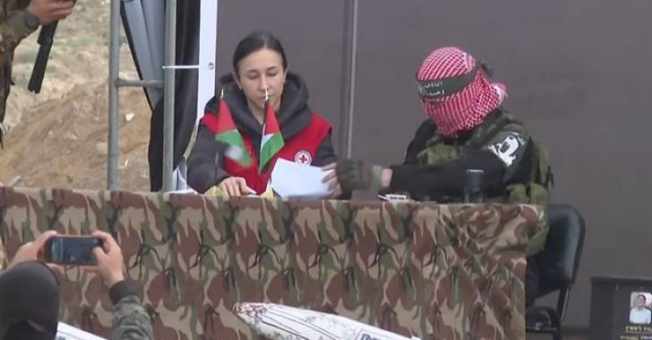 عرضت حركتا حماس والجهاد، صباح اليوم الخميس 4 نعوش على منصة قبيل تسليم جثث المحتجزين إلى الصليب الأحمر.