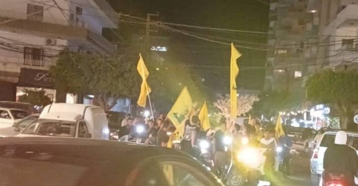 وأطلق المشاركون في المسيرة الذين رفعوا رايات “حزب الله”، هتافات مؤيدة للأخير.