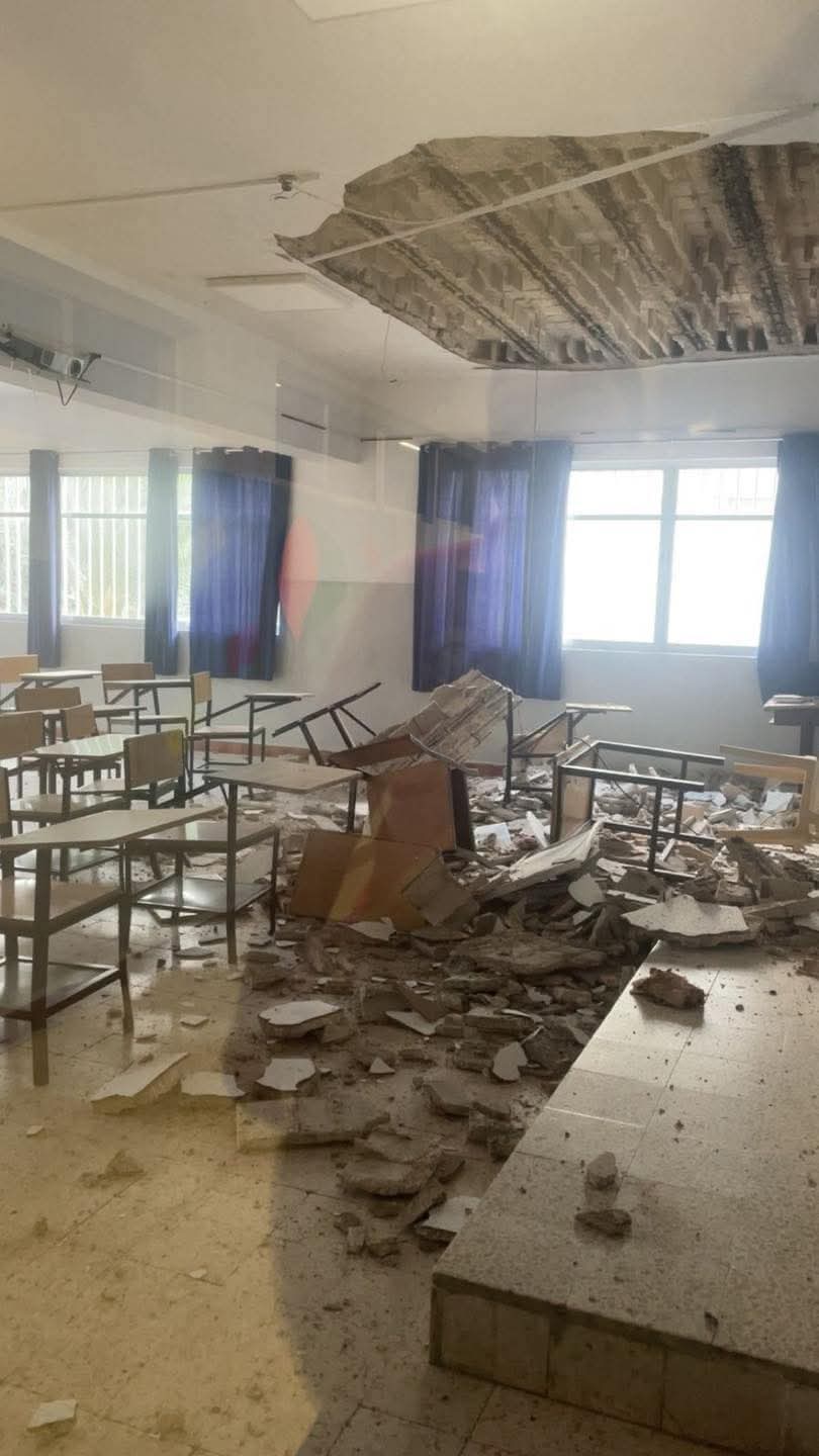سقط سقف أحد الصفوف في المدرسة الإنجيلية الوطنية في صيدا، قبل وصول الطلاب الى المدرسة.