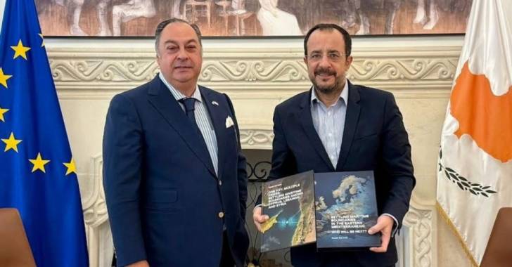 Cypriot President Nikos Christodoulides met with the international energy policy expert, Roudi Baroudi, who presented copies of his two latest books, “Settling Maritime Boundaries in the Eastern Mediterranean: Who Will Be Next?” and “One Key, Multiple Prizes: Settling Maritime Boundaries Among Cyprus, Lebanon, and Syria”