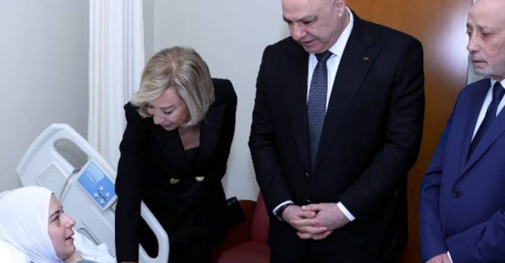 وكان في استقبال الرئيس عون والسيدة الأولى مدير المستشفى السيد جوزيف عتيق، والطبيب المعالج سمير علم الذي قدّم شرحًا مفصّلاً عن الوضع الصحي للسيدة بزي، ووضع ابنتها أسيل التي لا تزال في العناية الفائقة.