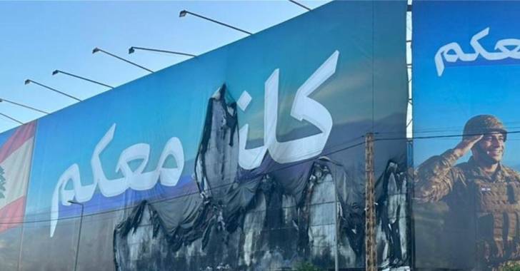 أقدم مجهولون على إحراق يافطة كُتب عليها “كلنا معكم” دعمًا للجيش، كانت مرفوعة على طريق المطار.