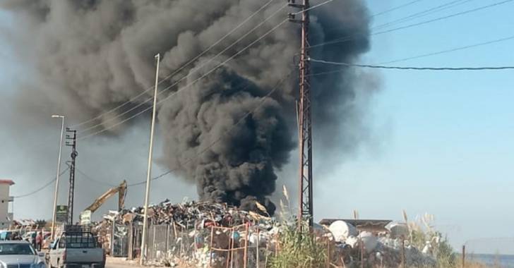 اندلع حريق، اليوم الجمعة، داخل بورة لجمع الخردة في بلدة خيزران، مما ادى الى اشتعال النيران.
