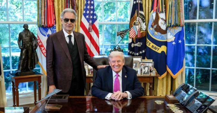 زار التينور الإيطالي أندريا بوتشيلي الرئيس الأميركي دونالد ترامب في البيت الأبيض أمس الجمعة، حيث قدّم عرضاً مرتجلاً في المكتب البيضوي.