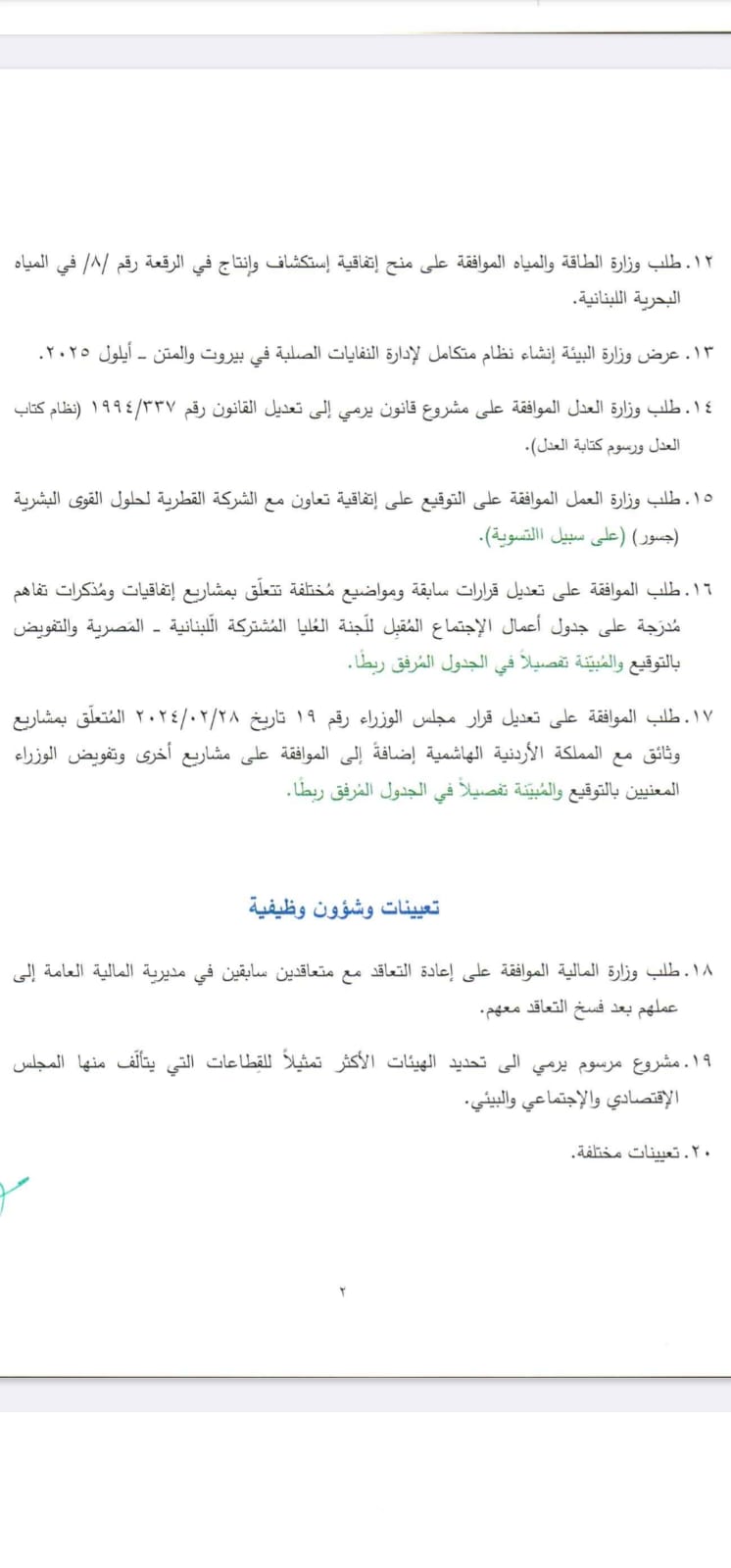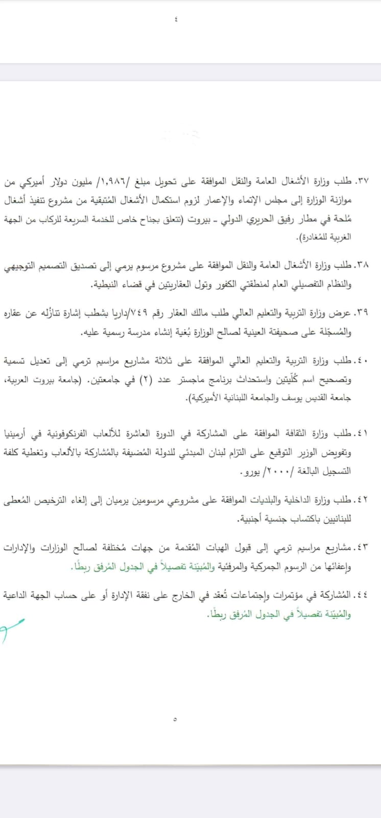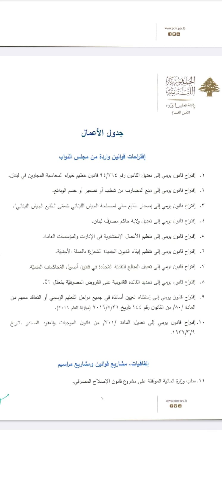 يعقد مجلس الوزراء جلسة عند الساعة الثالثة من بعد ظهر يوم الخميس 23-10-2025، في القصر الجمهوريّ، لبحث المواضيع المبيّنة في جدول الأعمال أدناه.