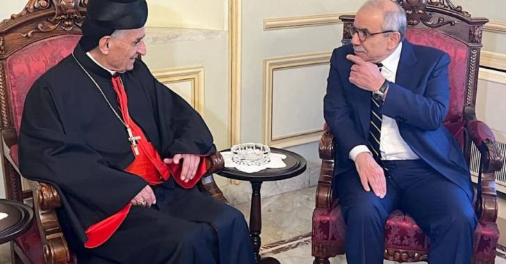 يستقبل البطريرك الماروني الكاردينال مار بشاره بطرس الراعي في الصرح البطريركي في بكركي رئيس الحكومة نواف سلام .