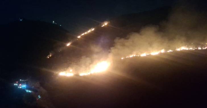 اندلع حريق كبير، مساء اليوم الأربعاء، في المنطقة الواقعة بين المعنية وسبلين في إقليم الخروب.