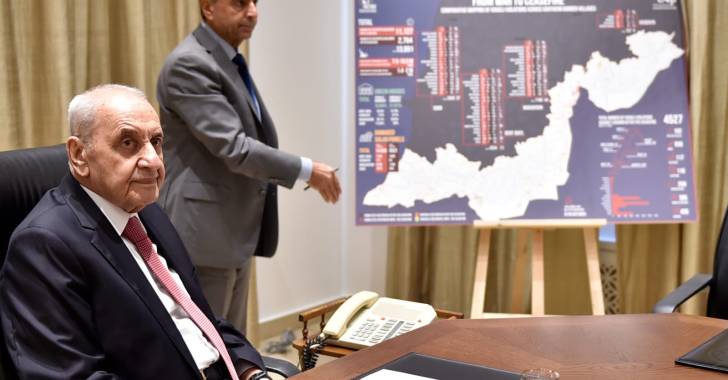 وقدم الرئيس بري للوفد، شرحا تفصيليا مسهبا على الخريطة التي اعدها المجلس الوطني للبحوث العلمية والتي تبين حجم الأضرار التي تسبب بها العدوان الاسرائيلي على لبنان على مدى العامين الماضيين قبل اتفاق وقف اطلاق النار وبعده وفي مختلف القطاعات لا سيما التدمير الكلي لعدد من القرى الحدودية مع فلسطين المحتلة، إضافة الى الأضرار التي لحقت بالبنى التحتية من طرقات ومؤسسات تربوية وصحية وسياحية والصناعية وقطاع الطاقة ، فضلا عن الخسائر التي مني بها القطاع الزراعي والأثر البيئي الناجم عن إستخدام إسرائيل للإسلحة المحرمة دوليا”.