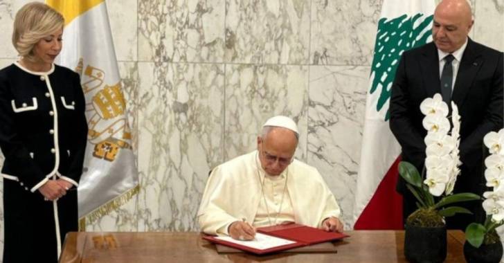دوّن البابا لاوون الرابع عشر رسالة في سجلّ الشرف في القصر الرئاسيّ في بعبدا، جاء فيها: "في اليوم الأول من زيارتي إلى لبنان، إحدى الدولتين اللتين أزورهما في هذه الزيارة الرسولية الأولى لحبريّتي، أتمنى بكل سعادة جزيل البركات على شعب لبنان بأكمله، وأصلّي أن يسود السلام ربوعه".