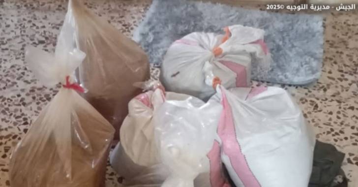 وفي هذا السياق، نفذت مديرية المخابرات بالتعاون مع الوحدات العملانية المنتشرة بتاريخ ٤ /١٢ /٢٠٢٥ عمليات دهم في بلدة بوداي – بعلبك وضبطت معملًا لتصنيع المخدرات وكمية كبيرة من المواد الأولية المستخدمة في تصنيعها.