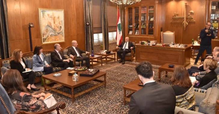 التقى رئيس مجلس النواب نبيه بري، اليوم الأربعاء، رئيس مجموعة العمل الأميركية لأجل لبنان (ATFL) السفير إدوارد غابرييل على رأس وفد من المجموعة مع وفد ضم عدد من الخبراء المتخصصين من واشنطن ومن الولايات المتحدة الأميركية،  بحضور السفير الأميركي لدى لبنان ميشال عيسى، حيث جرى عرض لتطورات الأوضاع في لبنان والمنطقة والمستجدات السياسية والميدانية.