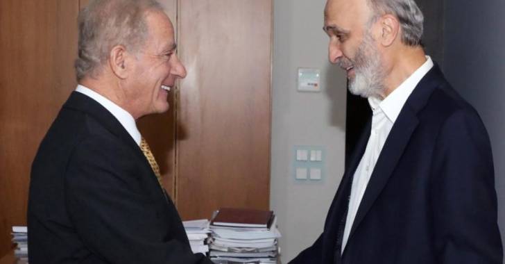 التقى رئيس حزب القوات اللبنانيّة سمير جعجع في معراب اليوم الجمعة السفير الأميركي في لبنان ميشال عيسى يرافقه الملحقان السياسيان جسي سافو وجايمي اوماليا، في حضور رئيس جهاز العلاقات الخارجيّة في "القوات" ريشار قيومجيان وعضو الهيئة التنفيذيّة جوزف جبيلي.