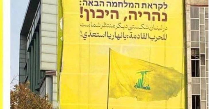 وكُتب عليها: "هزيمة أخرى تنتظركم في لبنان.. يا نهاريا استعدي: للحرب القادمة!".