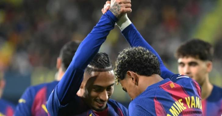 سجّل البرازيلي رافينيا (12 من ركلة جزاء) ولامين يامال (63) هدفي برشلونة.