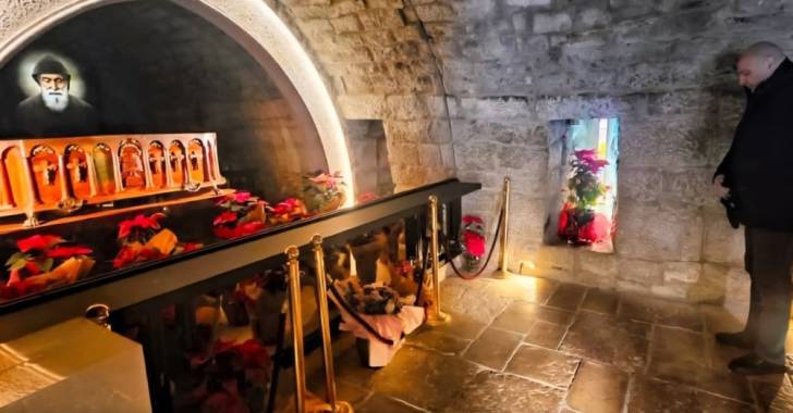 بالصورة.. الرئيس عون يصلي عند ضريح القديس شربل في عنايا