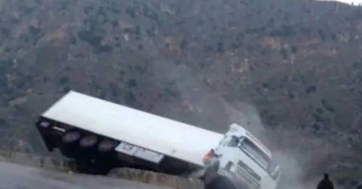 انزلاق شاحنة على طريق الخردلي