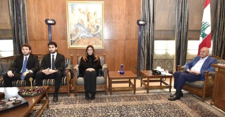 استقبل رئيس مجلس النواب نبيه بري في مقر الرئاسة الثانية في عين التينة، عقيلة النائب الراحل الدكتور غسان سكاف المحامية ميسم يونس ونجليها في زيارة شكر على التعزية والمواساة برحيل النائب سكاف.