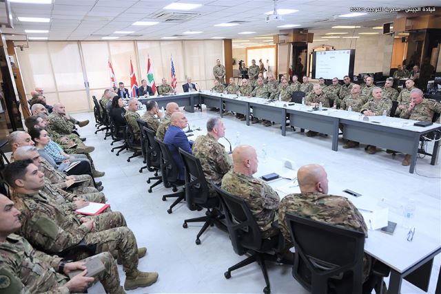عُقد قبل ظهر اليوم في مبنى قيادة الجيش – اليرزة اجتماع لجنة الإشراف العليا على برنامج المساعدات لحماية الحدود البرية، بحضور قائد الجيش العماد رودولف هيكل، والسفير الأميركي ميشال عيسى والسفير البريطاني Hamish Cowell والسفير الكندي Gregory Galligan، إلى جانب عدد من ضباط القيادة وقادة الوحدات، وأعضاء فريق العمل المشترك اللبناني – البريطاني – الأميركي، وفريق التدريب الكندي (CTAT). خلال الاجتماع، عُرضت المراحل المنفَّذة من البرنامج والخطوات المقبلة لتلبية حاجات الوحدات العسكرية المكلّفة بضبط الحدود الشمالية والشرقية ومكافحة التهريب والتسلل غير الشرعي، والتحديات التي تواجهها هذه الوحدات وسط التطورات الراهنة.