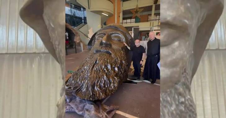 رفع اكبر تمثال برونزي في العالم لوجه القديس شربل في أستراليا
