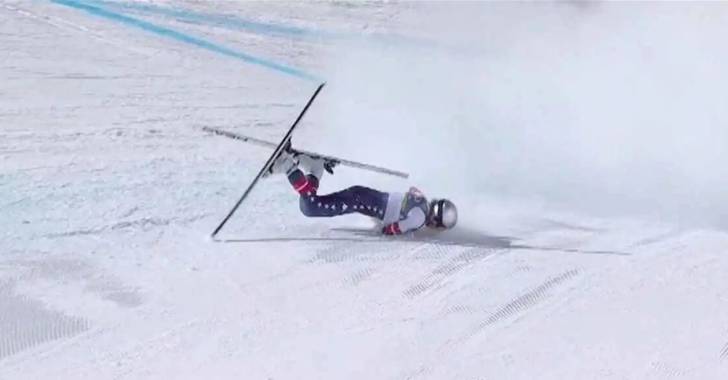 وخلال محاولتها في النهائي الأولمبي، اندفعت الرياضية المخضرمة بسرعة كبيرة فوق أحد المرتفعات، قبل أن تفقد السيطرة وتنحرف نحو أحد الحواجز البلاستيكية الجانبية على جانب المضمار، لترتطم به وتسقط بقوة على الأرض.