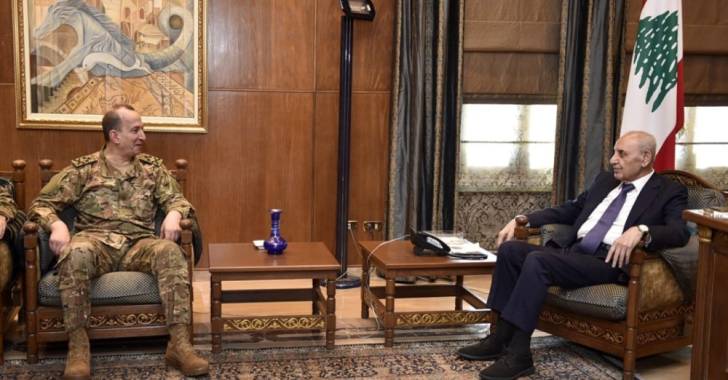 استقبل رئيس مجلس النواب نبيه بري في عين التينة قائد الجيش رودولف هيكل، اليوم الخميس.