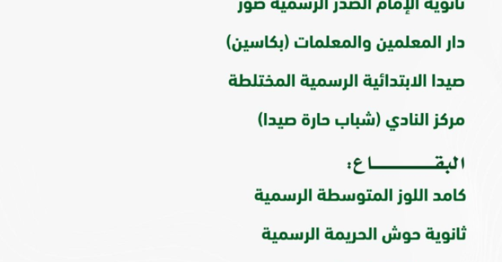 logo الجيش الاسرائيلي ينذر بقصف أبنية في بدنايل والهرمل logo خطوات استباقية لنقابة الصيادلة لتنظيم الاستجابة الدوائية… اليكم التفاصيل logo 7 شهداء من عائلة واحدة في الغارة على بلدة تول (صورة) logo بعد التحذير.. غارات إسرائيلية على البقاع logo نواف سلام: قرار الحرب والسلم هو فقط بيد الدولة اللبنانية logo وحدة ادارة الكوارث: عناوين جديدة لمراكز الايواء logo ‏رحلات شركة طيران الشرق الأوسط ليومي 2 و 3 آذار logo أيّوب: الحل العسكري "للحزب" لم يعد كافياً