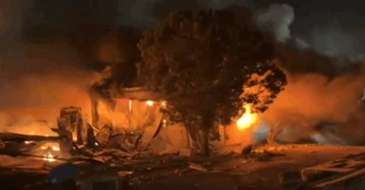 وأسفر الاستهداف عن احتراق المركز بالكامل إثر اندلاع نيران كثيفة فيه