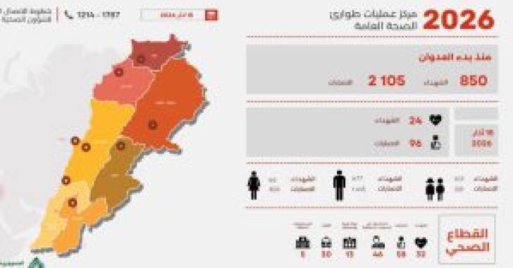 نشرت وزارة الصحة العامة التقرير اليومي الصادر عن مركز عمليات طوارئ الصحة حول تطورات العدوان الإسرائيلي على لبنان.