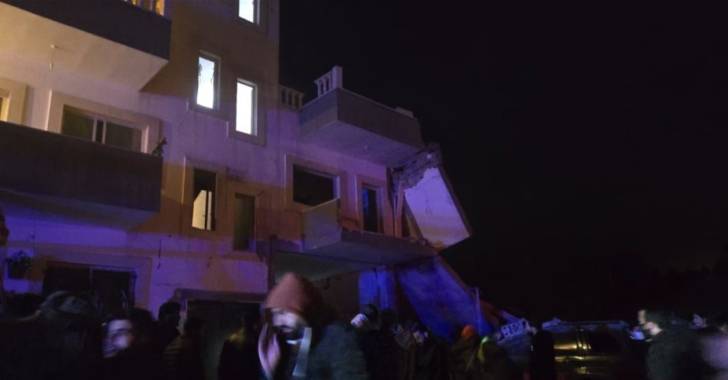 وأفيد عن وقوع اصابات، حيث تعمل فرق الانقاذ على سحبهم من تحت الأنقاض.