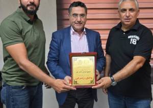 زار رئيس تضامن الأندية الرياضية لكرة القدم في الشمال أحمد فردوس والناشط الرياضي عشير حمامي رئيس إتحاد بلديات الفيحاء المهندس وائل زمرلي في مقر الإتحاد حيث قدم حمامي درعا تقديريا للمهندس...