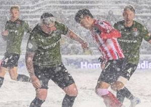 فيديو: استمرت 4 ساعات.. عاصفة ثلجية عنيفة تضرب مباراة كرة قدم!