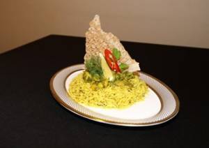 مطبق هامور المقادير٭ فيليه هامور 300 جم٭ أرز 200 جم٭ شبت 80 جم٭ أوراق الكزبرة الطازجة 50 جم٭ بصل 60 جم٭ زيت 40 مل٭ ثوم 10 جم٭ مرق السمك 500 مل٭...
