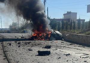 كاميرا المراقبة توثق لحظة استهداف السيارة في برج قلاوية، في الفيديو المرفق.