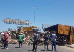 بالصور: حادث اصطدام بين شاحنتين على أوتوستراد المديرج.. و"اليازا" تدعو لتشديد الرقابة