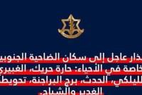 جدد المتحدث باسم الجيش الاسرائيلي افيخاي ادرعي تحذيره لسكان الضاحية الجنوبية لبيروت، وخاصة في الأحياء: