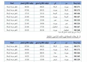 أعلنت شركة طيران الشرق الأوسط أنه لأسباب تشغيلية، سيتم تعديل مواعيد عدد من رحلاتها من وإلى كل من باريس، نيس، إسطنبول، القاهرة، الدوحة، لارنكا، جدة و أكرا -أبيدجان، وذلك خلال الفترة الممتدة...