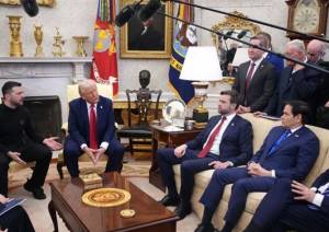 احتدمت المواجهة الكلامية بين الرئيس الأميركي دونالد ترامب ونظيره الأوكراني فولوديمير زيلينسكي في المكتب البيضاوي، اليوم الجمعة. مشهد...