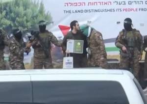 وثقت لقطات مصورة لحظات من عملية إطلاق سراح أسرى إسرائيليين من قبل "كتائب القسام"، الجناح العسكري لحركة حماس، حيث أقدم أحد الأسرى على تقبيل رأس أحد عناصر حركة حماس على منصة التسليم في مخيم...