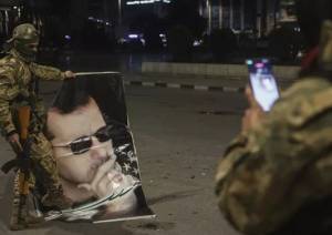 لحظة إسقاط تمثال والد وشقيق بشار الأسد في حلب (فيديو)