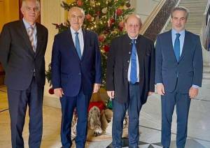 "خلال لقاء الموفد الفرنسي جان إيف لودريان في قصر الصنوبر، بحضور السفير الفرنسي هيرفي ماغرو والنائب...