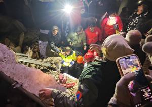 انقاذ طفلة من تحت الانقاض في موقع انهيار المبنى السكني في في طرابلس