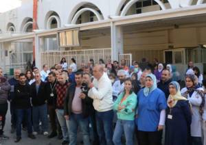 وقفة احتجاجية لموظفي مستشفى رفيق الحريري الجامعي